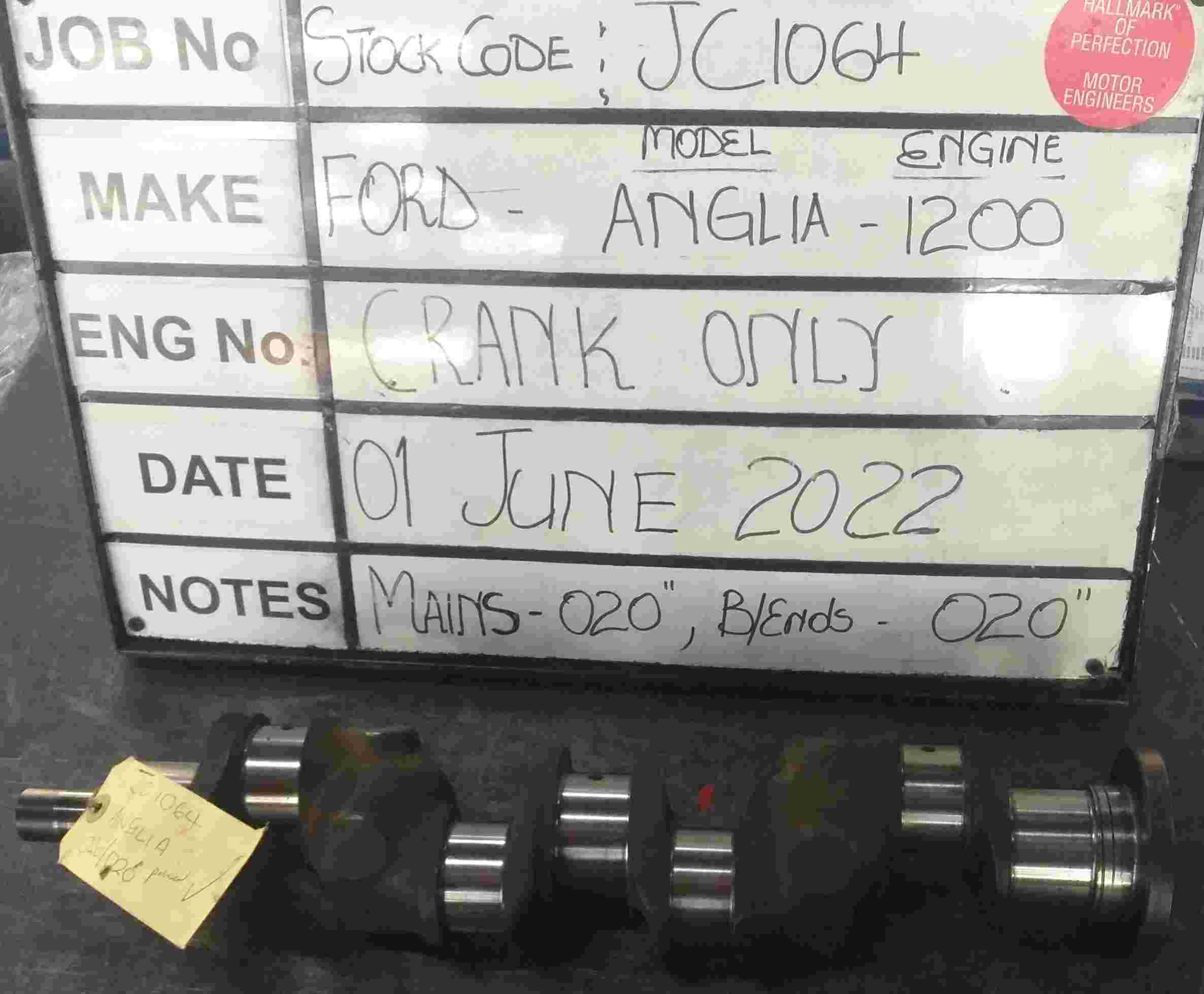 Ford Anglia 1200 Crankshaft Mains 020 , B/Ends 020